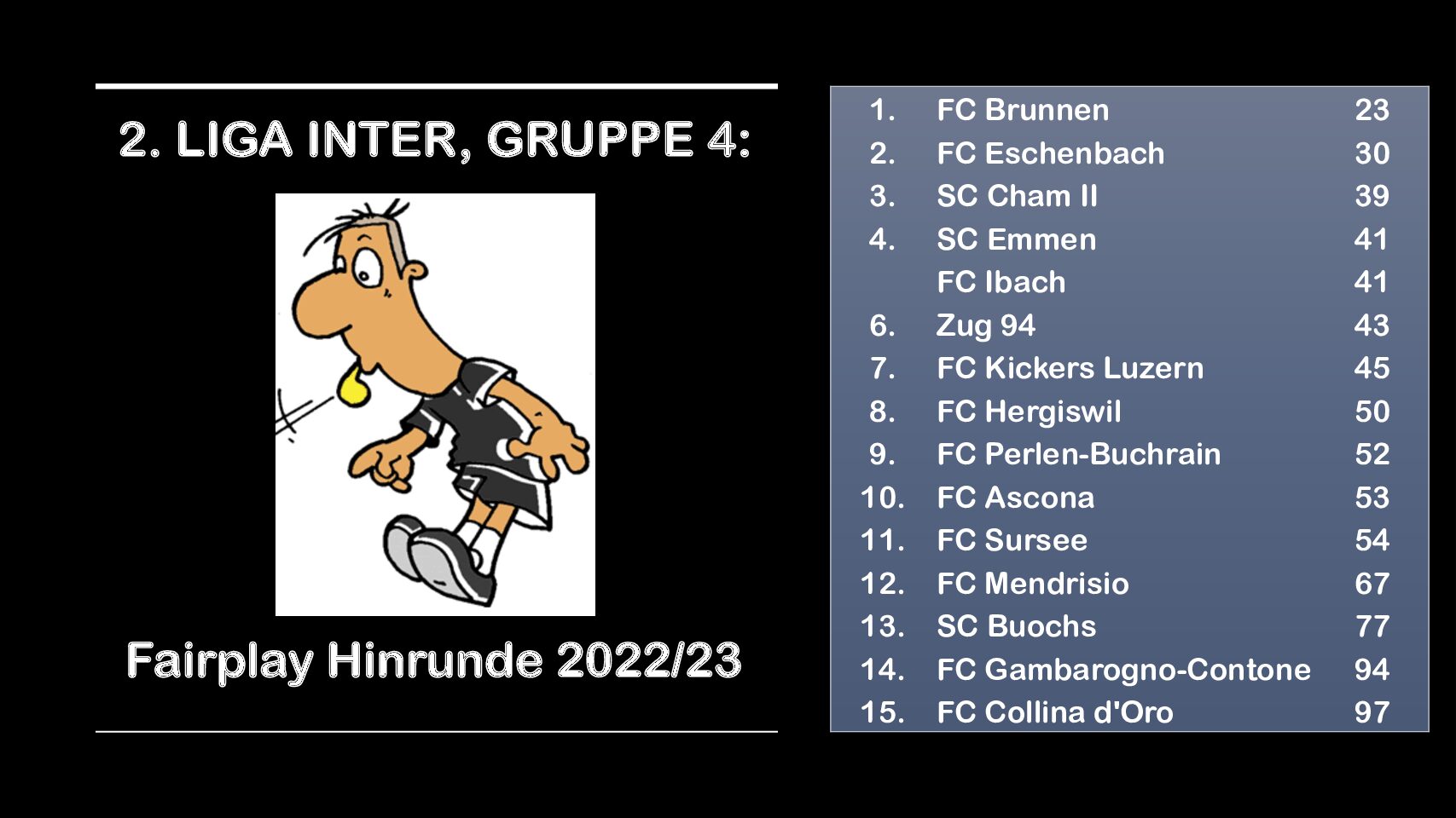 Wir haben nach dem 13. Spieltag die Fairplaywertung als zweitwichtigstes Kriterium zur Rangliste als “Verfälschung des Wettbewerbs” in den Raum gestellt. Am 14. und 15. Spieltag sind in 14 Partien der 2. Liga inter, Gruppe 4 zum Abschluss der Hinrunde nochmals 197 (!) Strafpunkte verteilt worden. In den 210 Hinrunden-Partien der Gruppe 4 wurden bislang 806 Strafpunkte vergeben! Dies ergibt einen Durchschnitt von 3,8 Strafpunkten pro Spiel. Den FCH betrifft dies mit 50 Strafpunkten leicht unter dem Durchschnitt von 3,6 Strafpunkten pro Spiel und befindet sich damit auf dem 8. Platz.