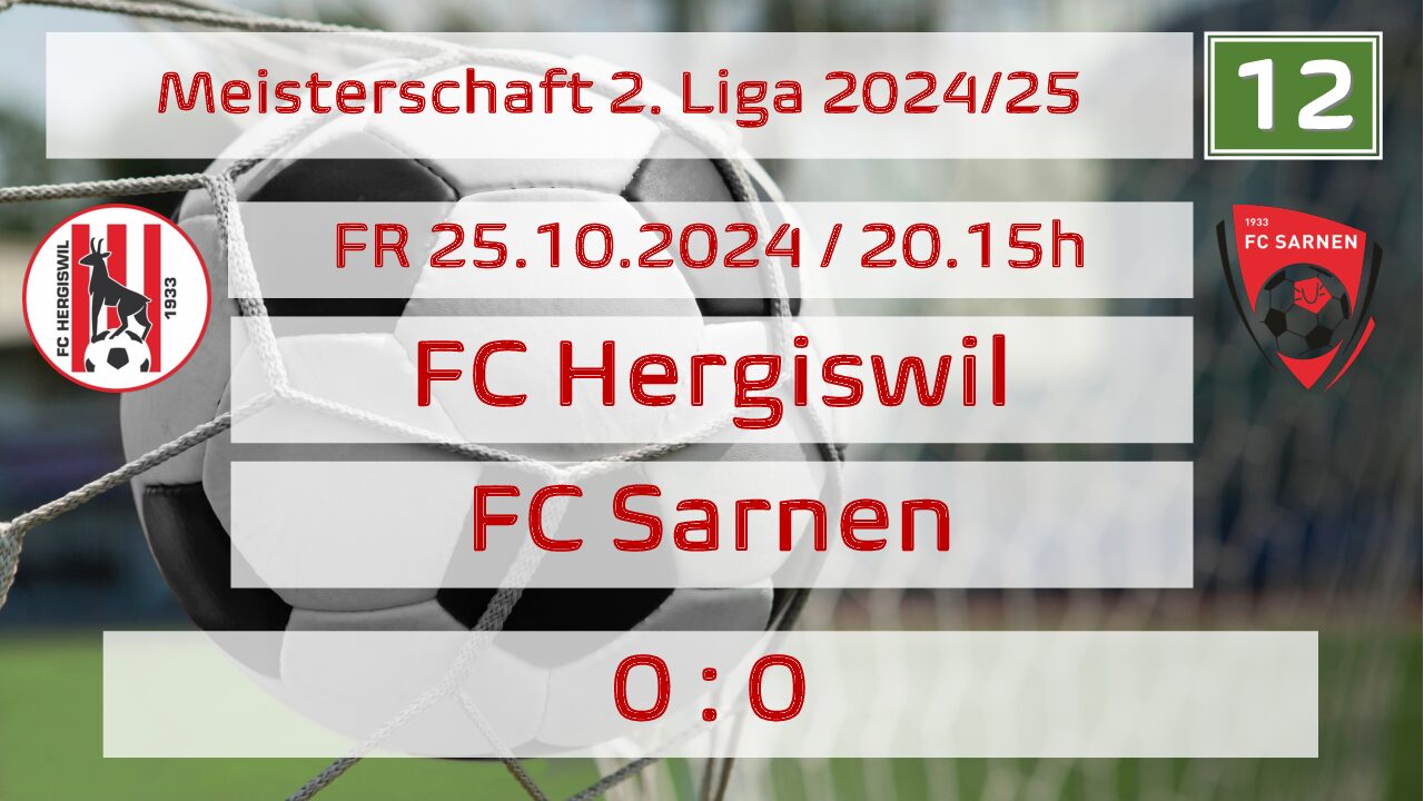 Die Steigerung des FC Hergiswil gegenüber dem 11. Spieltag war unverkennbar vorhanden, was sich durch deutlich mehr Ballbesitz und die vielen offensiven Bemühungen ausdrückte. Was allerdings nicht gelang war, dass man FCS-Keeper Nino Rondinelli im ersten Durchgang kaum einmal ernsthaft prüfen konnte. Hierfür waren die Angriffe aus dem Spiel heraus und auch bei Standards zu harmlos, wobei auch schwierig umzusetzen gegen eine kompakte und massierte Abwehr der Gasser-Jungs.