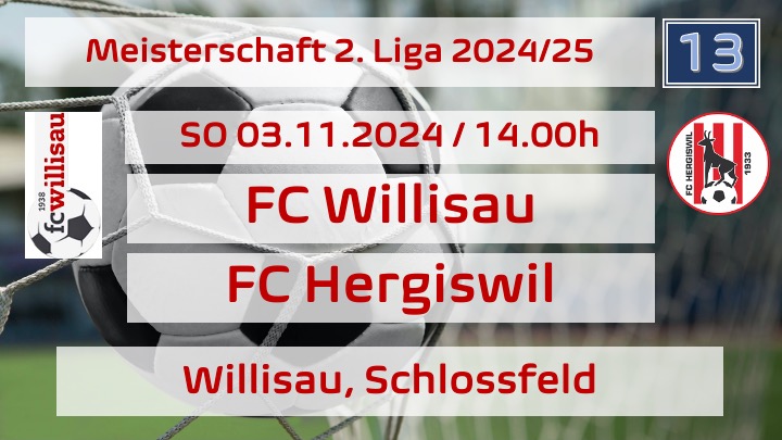 Am kommenden Sonntag, 03.11.2024 /14.00h ist der FC Hergiswil im letzten Hinrundenspiel beim FC Willisau zu Gast, während der FC Sarnen bereits am Samstag, 17.00h den Aufsteiger FC Baar auf dem Seefeld empfängt.