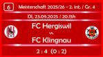 Hergiswil: Samuel Blättler; Mike Bachmann, Michel Kaufmann (46. Oliver Injic), Fynn Hofstetter, Jan Walker; Ambroz Simoni (68.’ Yann Regamey), David Schuler, Devin Arnold (89.’ Noel Brand), Luke Schindler (81.’ Diego Fernandez), Jascha Joller; Laurin Häfliger. Kein Einsatz: Valentino Esposito, Andrin Arnold, Tiago Cardoso. Abwesend: Mateo Peric, Timo Bertucci, Sven Brand, Manuel Sienemus, Jordan Burri, Lennon Studer.
