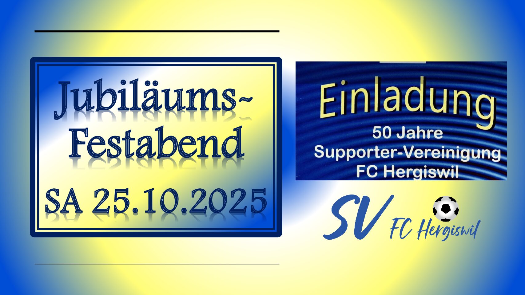 Am Samstag, 25. Oktober 2025 feiern wir unser 50-jähriges Vereinsbestehen! Unsere FCH-Supporterinnen- & Supporter laden wir herzlichst zu unserem Jubiläumsabend ein! Fest-Organisator Richard Kammermann und seine Vorstandskollegen haben ein attraktives Programm mit Apéro, Festmenü und musikalischer Unterhaltung zusammengestellt! Lass dir unsere Jubiläumsfeier nicht entgehen – wir freuen uns über zahlreiche Anmeldungen und empfehlen dir deine Teilnahme wärmstens…!